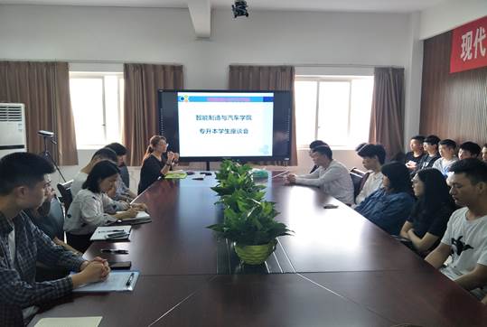 为了把握专升本学生与就业困难学生的思想动态、学习生活状况,更准确的为同学们提供就业信息和开展就业指导。4月19日上午,智能制造与汽车学院党总支书记罗永前在B301会议室主持召开座谈会,学院党总支副书记丁伟、学管科长白玥婕、2016级全体辅导员、班主任老师及学生代表参加了本次座谈会。
