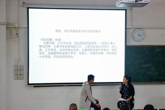 谈心谈话环节,参赛辅导员以情景再现的方式围绕谈话主题,结合自身工作实践,动之以情、晓之以理,巧妙展开此次谈话,引导学生正确认知学习生活中遇到的问题,解决学生心中的疑虑,并指导同学们用正确的方法解决问题。看似严肃的谈心谈话环节却成为了师生心与心交流的别样舞台,辅导员既是当代大学生的人生导师,也是大学生的知心朋友。