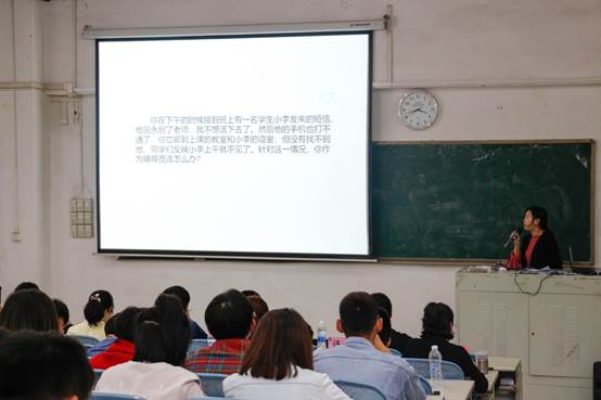 本次大赛共分为三个环节:理论宣讲、案例分析和谈心谈话。比赛内容都源于辅导员的日常工作,综合考察了辅导员的语言表达能力、问题分析能力、思想政治教育能力和心理辅导能力。