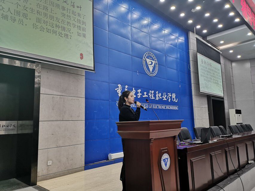 大赛开始之前,周国清院长为此次大赛致词。他说到,重庆电子工程职业学院荣登“2019广州日报高职高专排行榜--TOP1000”第六位,建筑与材料学院学生在重庆市的“建筑识图”比赛中连续荣获三年第一的优异成绩。此次辅导员职业技能大赛是辅导员展现个人风采的平台,也是检验职业技能和学习提升的机会,希望辅导员能在往后的工作中主动学习,不断提升个人职业修养。