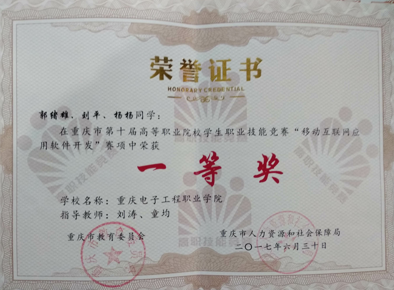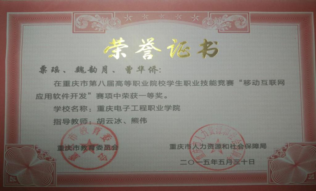 2015年全国职业院校技能大赛移动互联网应用软件开发三等奖