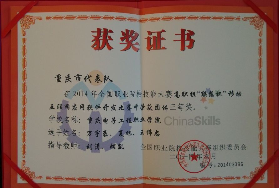 2014年全国职业院校技能大赛移动互联网应用软件开发三等奖