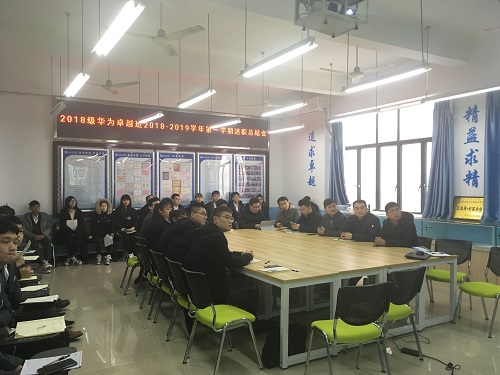 2019年1月15日上午,电子与物联网学院物联网工程系2018级物联网应用技术专业华为卓越班学期总结会在北校区陈良国家级技能大师工作室10-411会议室顺利召开。华为技术有限公司行业客户总经理刘嘉佳、华为全球培训中心西南区教育总经理闻银、华为技术企业业务部客户经理吴鸿妙等特意前来参加本次活动。电子与物联网学院党总支副书记毛弋、物联网工程系主任徐欣、大师工作室常务副主任武新、辅导员陈家玮、物联网应用技术专业主任(兼卓越班学业导师)徐小辉、卓越班全体同学参加了总结会议。本次总结会议筹备及议程安排由卓越班自行完成,会议过程由该班班长吴征洋同学主持。