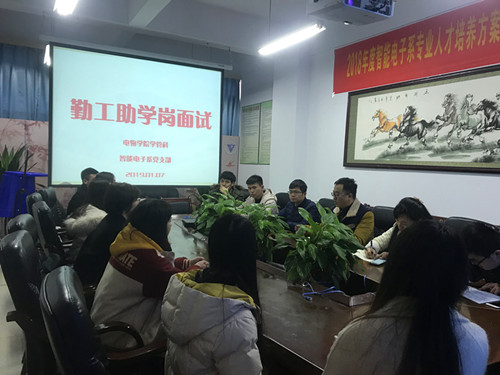 为了帮助贫困学子自立自强,尽早体验社会实践,积累实际工作经验,我院智能电子系、物联网系、信息服务系、项目办、工程中心、教务科6个系、科为我院学子提供了35个勤工助学岗位。在学管科的统筹、组织下,于1月7日全部完成岗位面试,近50名同学参加了本次面试。