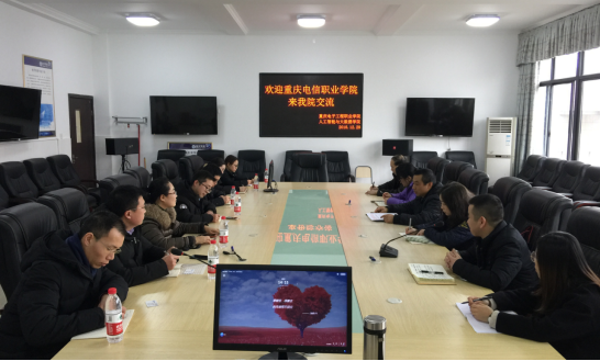 2018年12月28日,重庆电信职业学院大数据与软件学院郑未院长、张鲁燕副院长、罗国春主任、李再友主任、专业教师杨正英、刘军、杨文艺一行来我院调研考察,人工智能与大数据学院吴焱岷书记携部分专业教师付雯、项刚、郑卉、吴明元、李俊翰、王宁忆、肖蜀奉出席了座谈会。