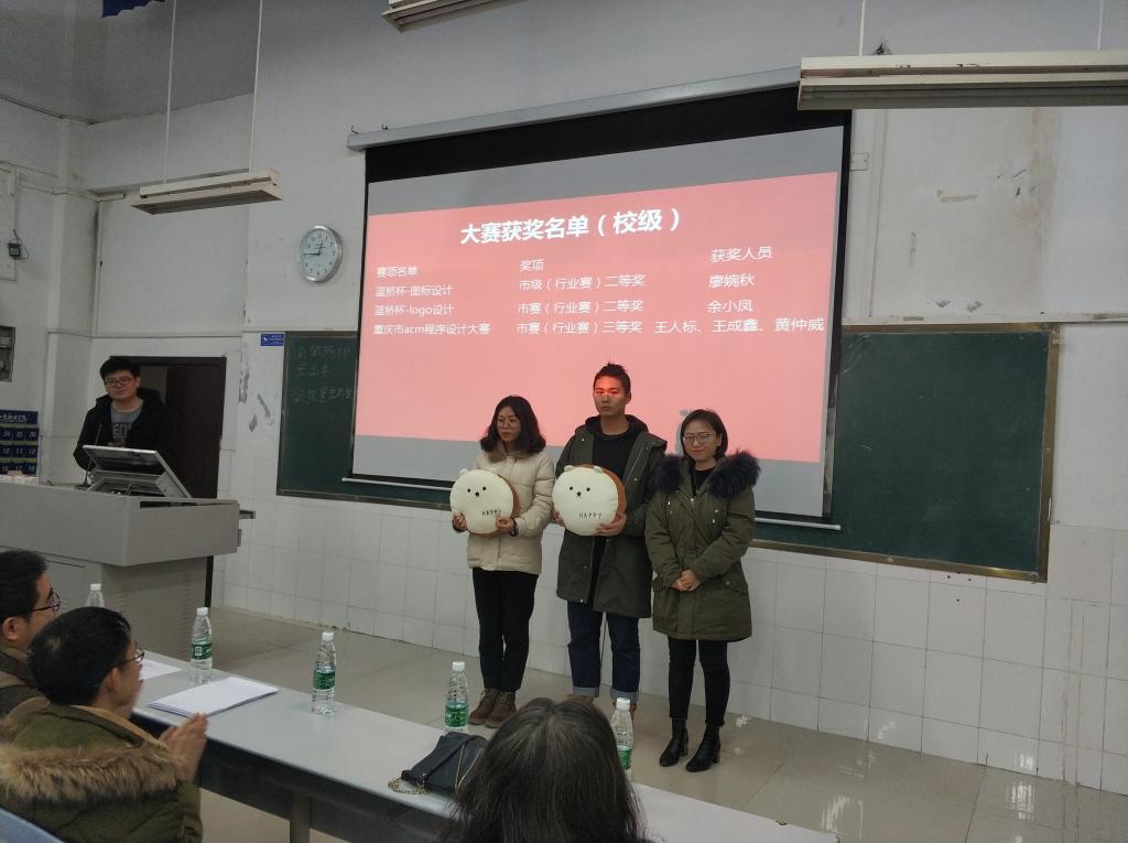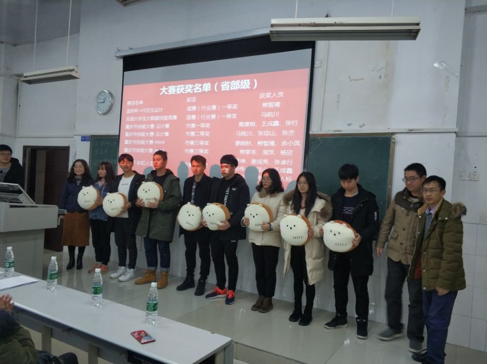 会上李腾主任总结了过去一年来发挥工匠工坊的”工匠精神”、不断创新,不断突破自我;发挥校企合作优势,利用产学研共建打造优质专业;在校级“双带头人”教师党支部书记工作室的指导和带领下实现师生共创、师生共建、师生共荣的新局面。一年的辛勤换回了累累硕果,在过去的一年里学生获得国家技能竞赛一等奖3项,二等奖1项,省部级奖励8项,获得专利4项、社会服务3项等不菲成绩。会上给获奖学生办法纪念品并从中推选出了“年度最佳创新进步奖”、“年度最佳贡献奖”给予了现金奖励。为了丰富学生课余生活,云计算与大数据系开展了“第一届运动会”并为获奖学生颁发奖品。