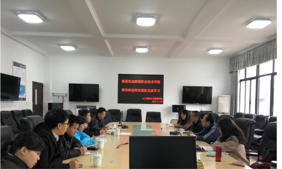 2018年11月30日上午,顺德职业技术学院智能制造学院副院长曾爱林,以及计算机软件与应用技术教研室相关老师一行来我院访问,与软件和大数据相关专业就专业建设、实训室建设等方面进行学习交流。