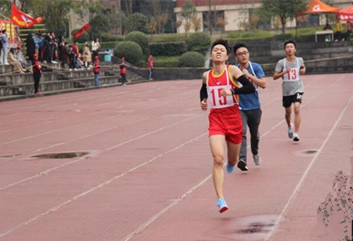 5000米的长跑决赛,不仅是一场速度的比拼,更是耐力与坚韧意志的多重考验,运动员需要足够的技巧、体力与耐力才能在角逐中突破自我、顺利晋级。赛场上,男子5000米决赛的枪声一响,吴志锦便如离弦的箭一般冲出起跑线,遥遥领先。到了最后200米,他更是以闪电般的速度向终点发起最后冲刺,引得全场观众惊叹不已,加油呐喊声不绝于耳。赛后当同学们得知他的成绩,不禁发出“天啊,我1000米都要跑4分22秒”的感叹,实乃对吴志锦同学闪电速度和超强意志的高度肯定和折服。