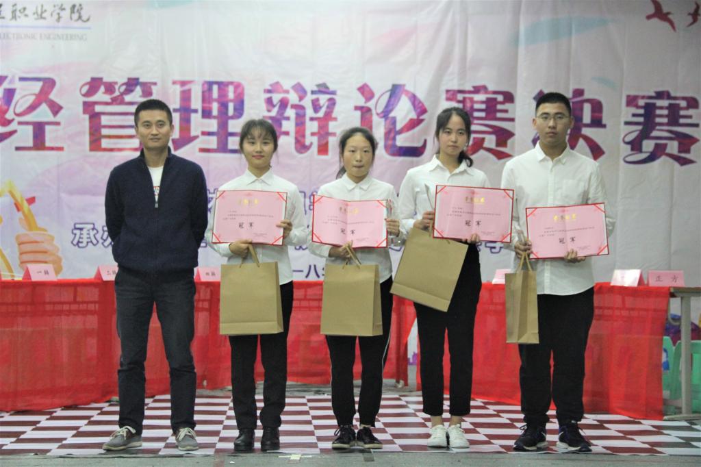 会计信息技术专业和证券与期货专业通过前期八个参赛队的初赛、复赛角逐,杀出重围,会师决赛。正方论点“法不容情”,反方论点“法也容情”。双方围绕本方的论点进行了激烈的辩论。场上问答有来有回,场下掌声此起彼伏。通过五个环节的角逐和评委打分,最终反方更胜一筹,获得了此次辩论赛的冠军。场下的大众评审也投票选出了自己心中的最佳辩手---正方尹恒同学。高攀老师为我们此次比赛内容进行了点评,苏逸老师为获奖队伍和个人颁奖。