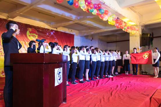 而后赵旭老师宣布了第七届学生会干部名单及青年志愿者服务支队干部名单。新一届干部集体佩戴了胸牌进行团旗交接、宣誓仪式。仪式完毕由第七届团总支学生会主席文鸯同学发表就职演讲,他表明了带领新一届学生会干部更加踏实、尽责,为同学服务的决心。让我们相信新一届的学生会会更加优秀,更加美好!