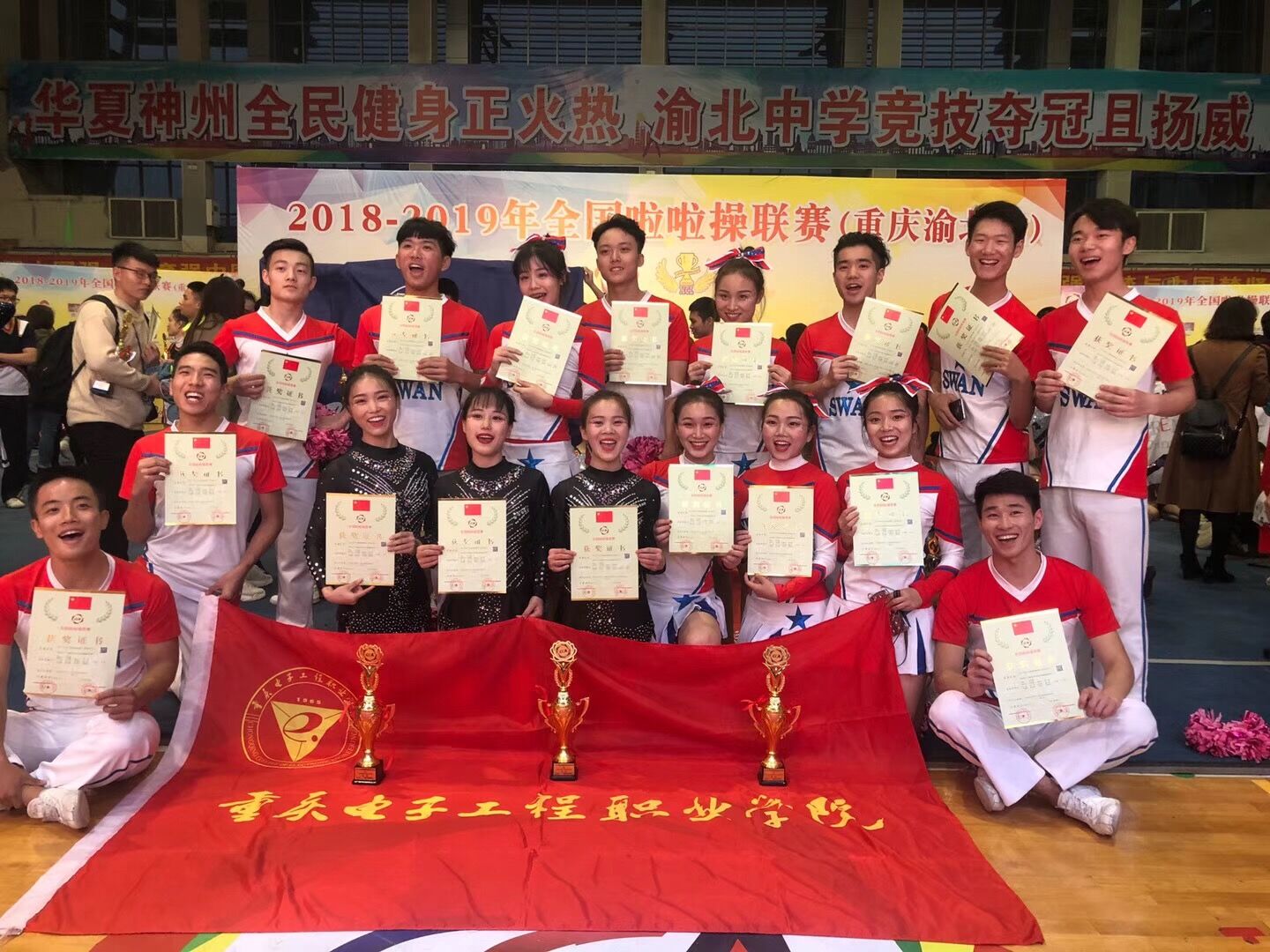 2018年11月3-4日,由国家体育总局体操运动管理中心主办,全国啦啦操委员会、重庆市渝北中学承办的2018-2019年全国啦啦操联赛(重庆渝北站)在渝北中学隆重举行。来自全国的大中小学等共计143支队伍2500余人参加了本次比赛。