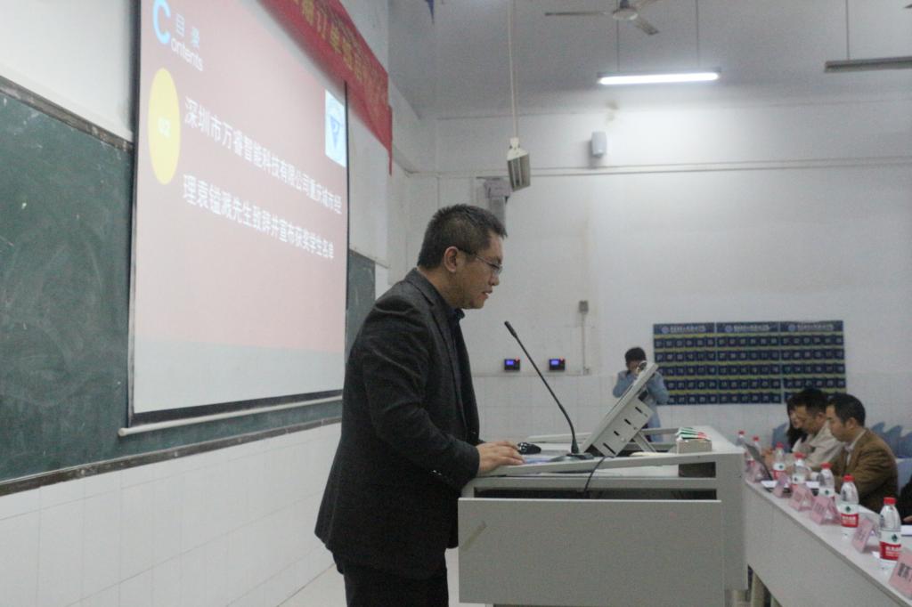 企业文化宣讲环节,万睿袁镒溅经理从万睿的企业品牌战略、服务领域、人才理念等做了详尽的讲解。互动、答疑环节17级建筑智能化专业学生踊跃参加,效果良好。