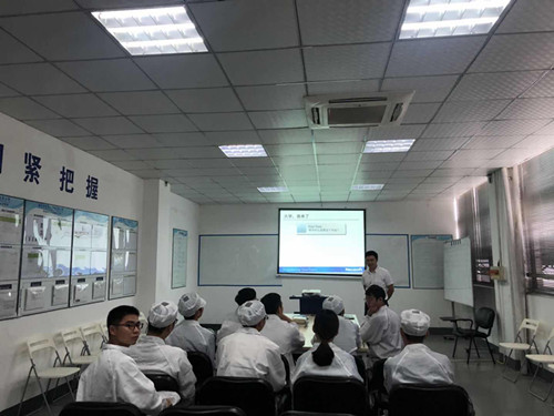 君歌电子生产部部长陈小伟为全体实习生上培训课《送个在线大学而生的一堂课》