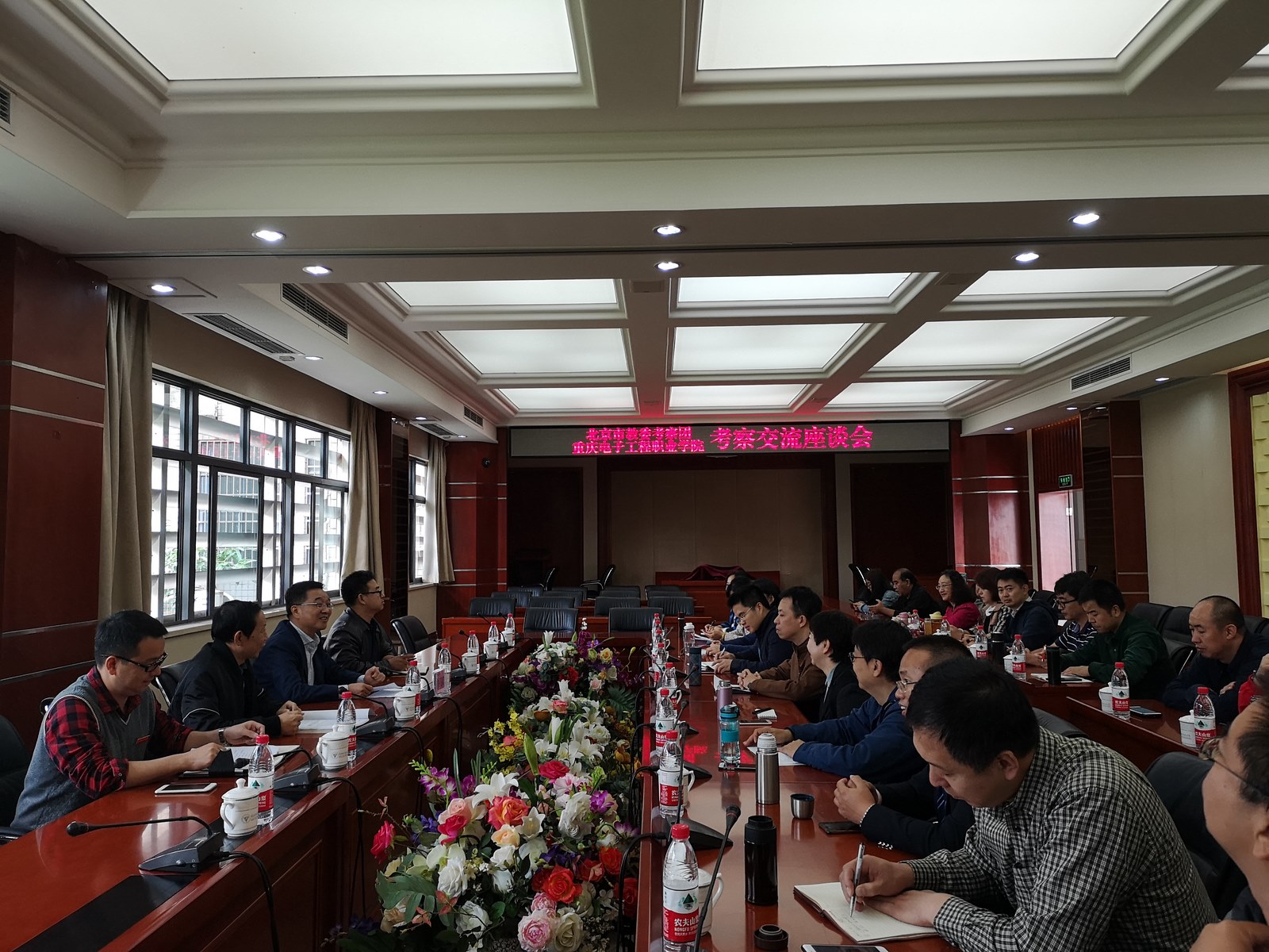 2018年10月,北京市教委考察团一行20余人到重庆市考察教育改革发展情况。10月10日,考察团在重庆市教委高教处领导陪同下到达重庆电子工程职业学院考察调研,学校副校长刘成俊、学工部部长何光明、培训与继续教育中心主任陈志军、教务处副处长赖先志、国际交流与合作发展处陈涛参加了本次考察调研活动。