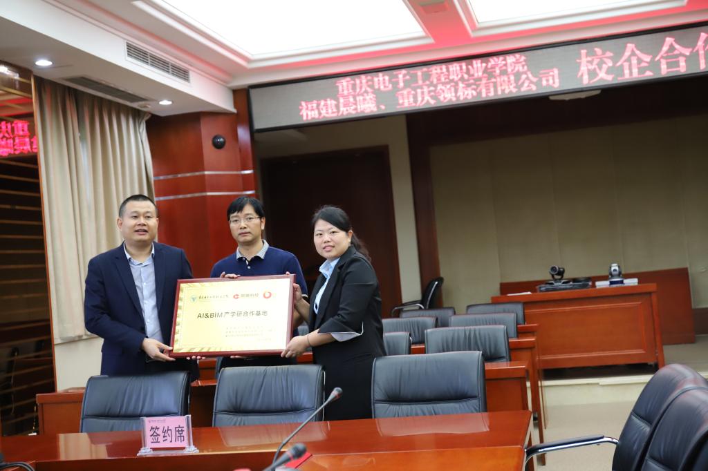 首先由建筑与材料学院周国清院长致欢迎词并简要介绍了学校办学和校企合作情况,谭莉经理介绍了福建省晨曦信息科技股份有限公司发展情况,林兵总经理也介绍了重庆领标工程项目管理咨询有限公司发展情况以及人才需要情况,边凌涛副院长作了总结发言,表达了长期合作的愿景。协议签字后,双方就项目运行思路、管理方案和人才培养方案进行了深入的交谈;重庆电子工程职业学院授予福建省晨曦信息科技股份有限公司、重庆领标工程项目管理咨询有限公司“产学院教育基地”牌匾;福建省晨曦信息科技股份有限公司、重庆领标工程项目管理咨询有限公司授予重庆电子工程职业学院“晨曦AI&BIM教学实践基地”牌匾。