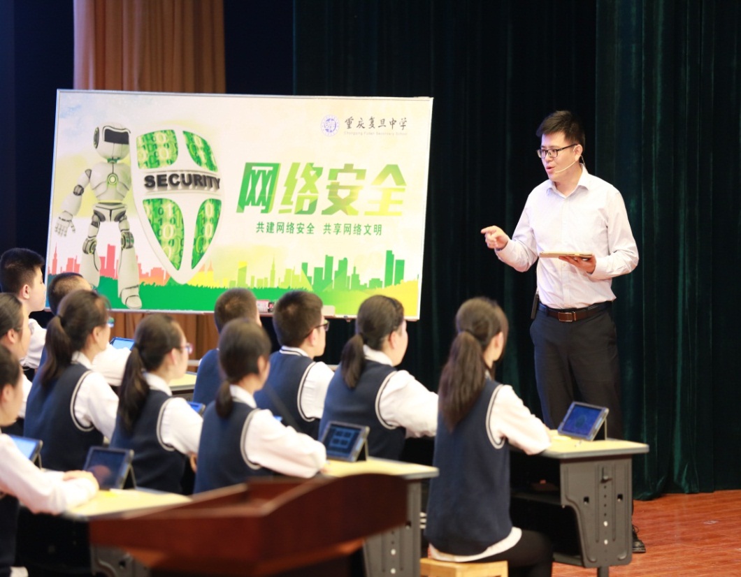 渝中区网络安全宣传周校园日活动在重庆复旦中学举行,以重庆复旦中学初三5班网络安全主题班会的方式开展。在班会上,张靖老师作为网路安全专家为学生设计了“网络钓鱼”模拟环境--“吃鸡大礼包领取网站”。学生在不知情的情况下亲身体验了“钓鱼网站”所带来的危害。并在主题班会上以一首自编的“网络安全打油诗”向学生讲解了作为中小学生如何做好网络安全防护工作。