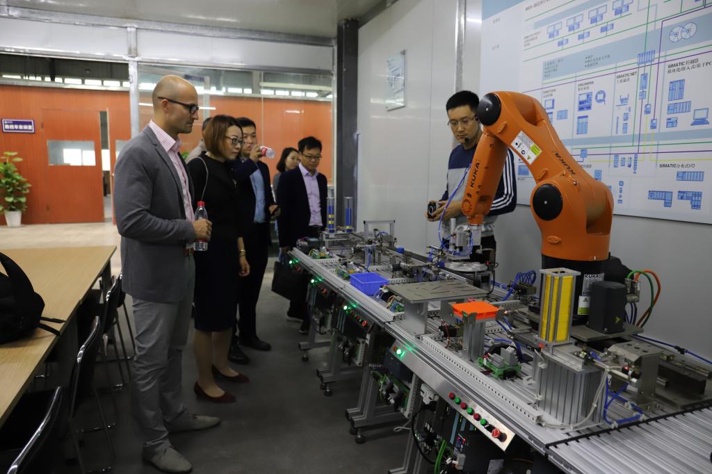 9月12日上午,德国手工业协会亚历山大·拉德维希先生,北京德信合力教育科技有限公司何薇薇董事,刘宇总经理等一行到pg国际就共建中德(西南)职业培训学院进行洽谈。他们首先参观了学校汽车工程、机电工程和物联网应用中心,进一步加强了对pg国际的实训实践基地的了解。