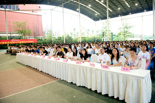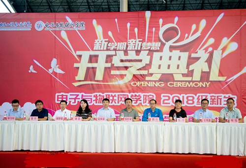 9月6日上午8:30,重庆电子工程职业学院电子与物联网学院在南校区风雨篮球场举行2018级新生开学典礼。莅临本次典礼的嘉宾有学院党总支书记张红斌、院长陈良、副院长夏西泉、组织委员陈鸿,综合办公室主任廖金权、明伟,学管科科长张力、刘影,智能电子系主任王用鑫、信息服务系主任刘睿强、物联网系主任徐欣,全体辅导员及2018级全体新生。