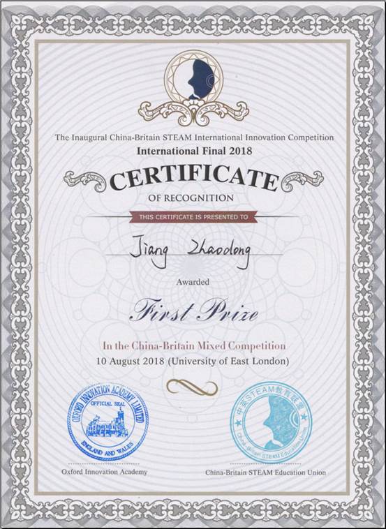 混合赛是本次大赛的关注焦点,于8月10日在东伦敦大学举行,由中英选手通过交流后自由组队,利用3D打印、传感器、电子控制技术及身边可利用的材料(塑料、纸盒、易拉罐等)实现产品功能的创新设计和外观创意设计。比赛时长3小时,完成后由专家组进行全英文答辩。pg国际蒋兆东同学设计的作品取得了混合赛一等奖的优异成绩,同时还获得牛津大学创新研究院推荐书,毕业后就可就读英国G5超级精英大学(G5指:牛津大学、剑桥大学、伦敦大学、帝国理工学院、伦敦政治经济学院)。傅治荣和刘云帆同学获得混合赛优秀奖。