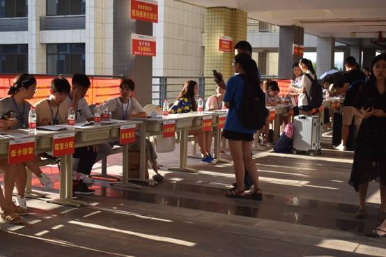 早晨8时,在财经管理学院院长黄志平、党总支副书记廖坤科、学管科科长苏逸、刘友庚等领导的带领下,财经管理学院新生辅导员、学生会干部及学生志愿者早早来到迎新接待点等待“00后”新生们的到来。接近九点,炽热的太阳已初现锋芒,大家迎新的心情和太阳一样热烈,随着一波又一波新生的到来,迎新工作变得热火朝天。老师和志愿者们热情的为新生介绍入学报到流程,细心的为他们办理入学手续,耐心的为他们讲解开学注意事项。