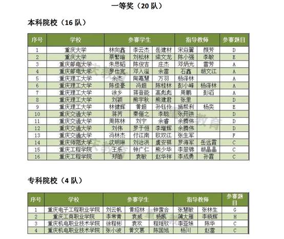 全国大学生电子设计竞赛是教育部倡导的大学生学科竞赛之一,是面向大学生的群众性科技活动,目的在于推动高等学校促进信息与电子类学科课程体系和课程内容的改革,有助于高等学校实施素质教育,培养大学生的实践创新意识与基本能力、团队协作的人文精神和理论联系实际的学风;有助于学生工程实践素质的培养、提高学生针对实际问题进行电子设计制作的能力。全国大学生电子设计竞赛每逢单数年的9月份举办,在双数的非竞赛年份中,由各省赛区举办省赛。今年重庆全市有27所高校313个代表队(其中本科院校253队,高职高专院校60队)参加了本届比赛。
