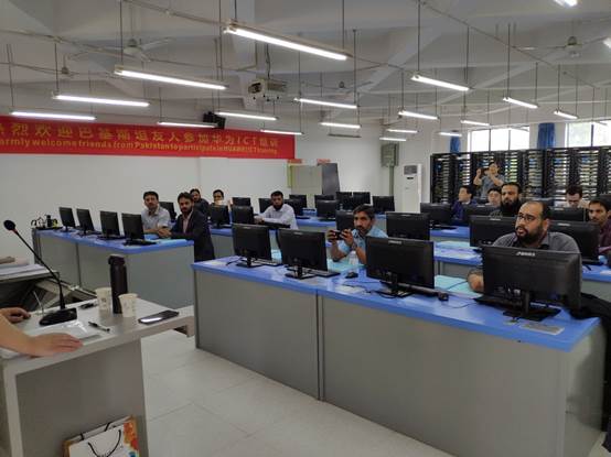 7月31日上午,来自巴基斯坦7所高校的10名高级专业技术人员到pg国际参加pg国际与华为技术有限公司、泰克网络实验室共同组织的为期一周的ICT技术培训班。pg国际龚小勇副校长、合作发展处莫绍强处长、泰克网络实验室创始人及CEO林康平先生、通信工程学院曾晓宏书记和陶亚雄院长以及参与本次培训的华为讲师出席了培训班开班仪式。
