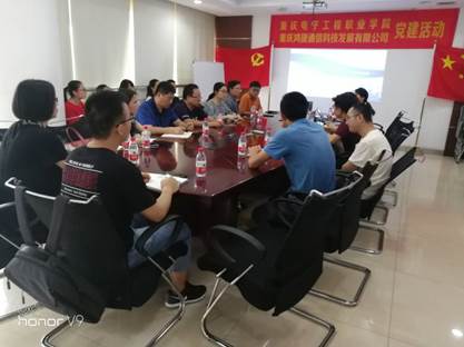 为了深入学习贯彻党的十九大精神,推动全国高校思想政治工作会议精神落地生根,围绕探索立德树人的根本任务和思政工作方式方法的创新,2018年7月6日,通信工程学院党总支书记曾晓宏同志、组织员韩德勋同志以及通信工程与通信运行党支部书记张慧敏同志共同带领该支部全体党员到重庆鸿捷通信科技发展有限公司开展党建工作的考察、交流、学习活动。重庆鸿捷公司党支部书记杨昌黎同志和企业员工党员代表出席了交流会议。