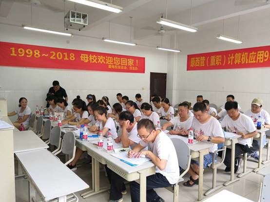 2018年7月1日,计算机9841班的37名同学在繁忙工作间隙,不远万里,相约从祖国各地返回学校开展校友活动。这次返校活动的主题是“浓浓母校情,依依校友心”,二十年前遇见,二十年后再见。