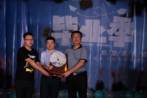 最后,2015级学生班级代表向学院赠送的礼物,更是表达了莘莘学子对学院的热爱。在《友谊地久天长》的悠扬歌声中,电子与物联网第一届毕业典礼落下帷幕。