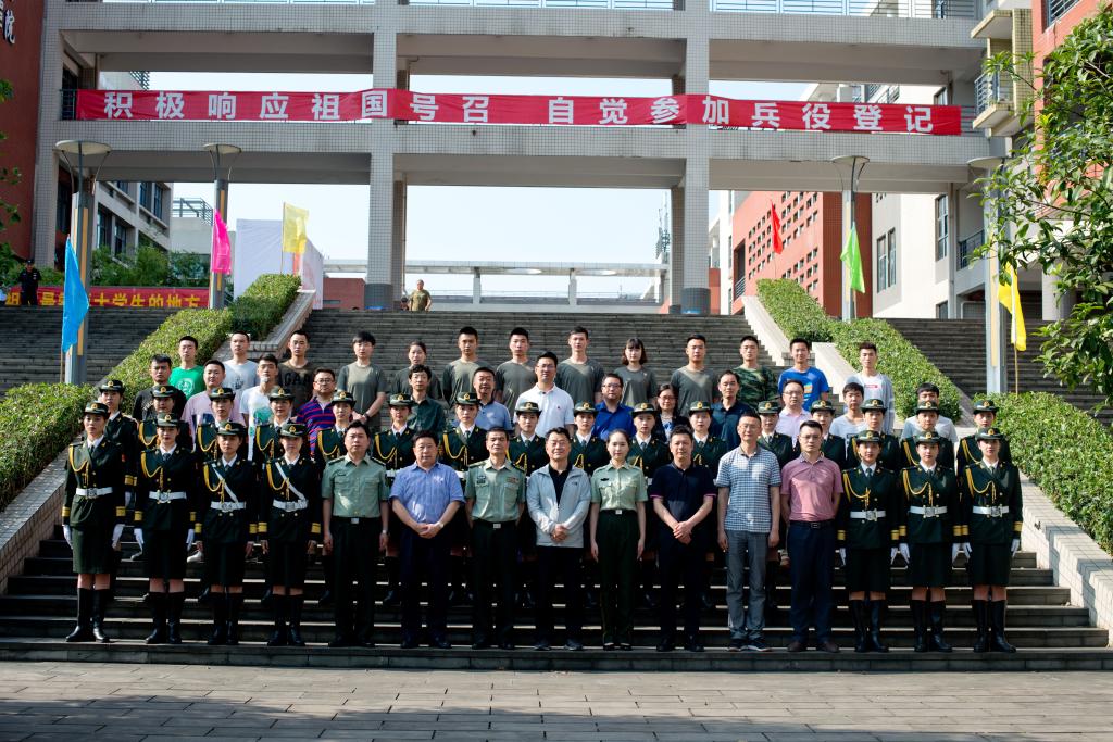 最后,校党委书记孙卫平正式宣布重庆市电子工程职业学院2018年征兵宣传仪式正式开始,现场响起嘹亮的中国人民解放军军歌。