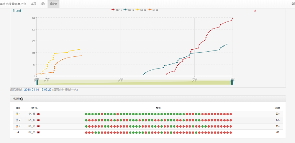 由重庆电子工程职业学院计算机学院自主设计的第二、三阶段的攻防环境和实时计分系统成为本地大赛的亮点,并实施全程直播,第二三阶段成绩实时显示,动态显示各参赛队伍成绩排名,充分体现了比赛的公开、透明、公正,也有效提高了大赛的趣味性和可观性是,华龙网进行了全程跟踪报道。