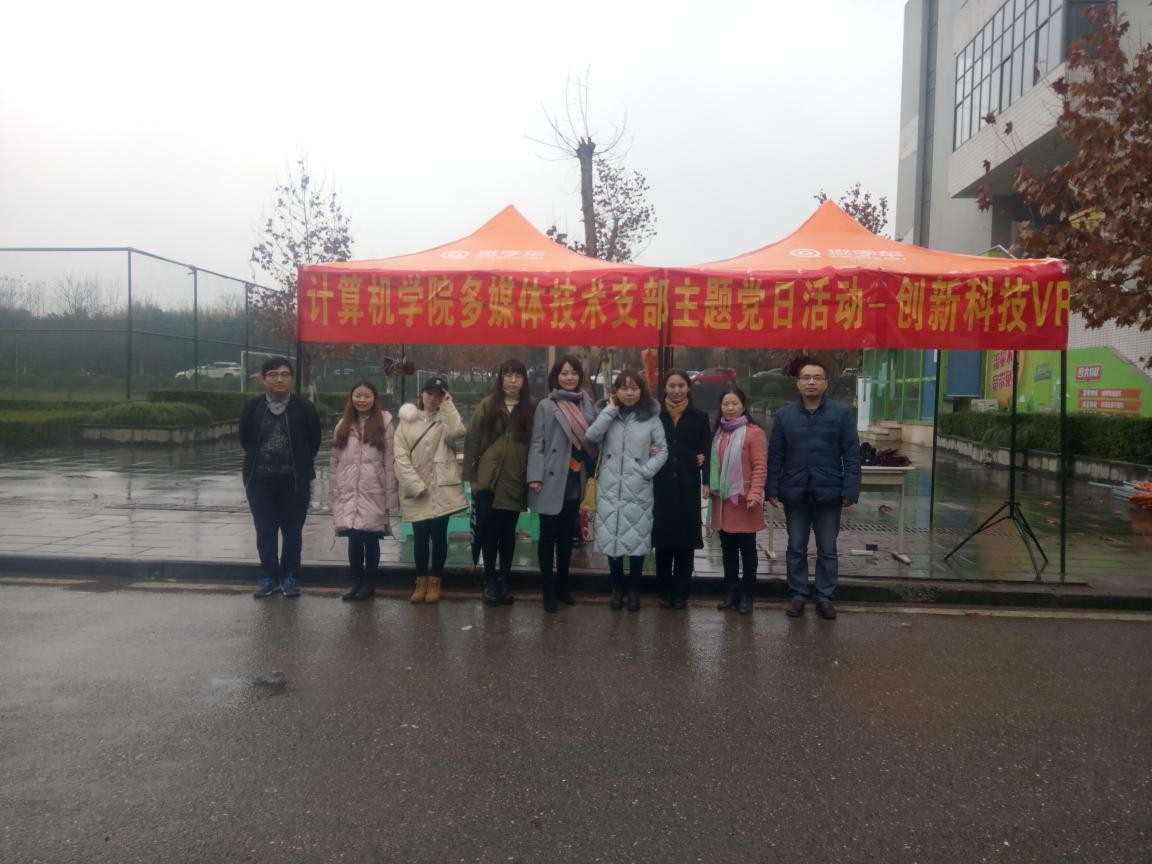计算机学院党总支多媒体技术支部于2018年1月4日在北校区食堂旁举行了创新科技VR体验。此次活动主要是为响应习近平总书记的号召,为广大学子提供更加广阔的学习平台,让广大师生近距离认识了解VR即虚拟现实。让大家认识到虚拟现实在以后我们的日常生活衣食住行各方面的重要作用,加深大家对虚拟现实的认识,激发更多同学对VR技术的兴趣。