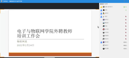 为进一步规范外聘教师教学行为、保障学校外聘教师教学的优质开展,电子与物联网学院物联网系于2月24日,通过线上方式组织召开“2022年春季学期外聘教师线上培训工作会”。物联网系主任徐欣、副主任贺涛、教学秘书、党政秘书及任课外聘教师参会。