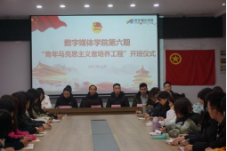 为引导青年学生坚定理想信念,全面提高大学生骨干综合素质。2021年12月15日中午,数字媒体学院在南校区1411会议室举行第六期青年马克思主义者培养工程。出席开班仪式的有数字媒体学院党总支书记彭海深同志、党总支副书记钟佐彬同志、学生党支部书记朱文昊同志、团总支书记吴艾佳老师、思想政治辅导员翟玉珠老师以及马克思主义学院专业教师杜鹤淦老师,全院学生干部60余人参加了开班仪式。仪式由团总支书记吴艾佳主持。