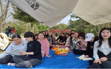 阳春三月,阳光明媚,大地复苏,生机勃勃,到处都洋溢着浓浓的春意。在“三八”妇女节来临之际,为营造健康、和谐、积极向上的节日氛围,不断提升老师们的幸福感和获得感,2022年3月6日,马克思主义学院分工会第二工会小组(概论教研室)全体教师在学校学子坡开展了以“在书香中感受知识魅力”为主题的读书分享活动,交流对所读书籍的体会,畅谈读书所带来的好处,树立全员学习、终身学习的理念。