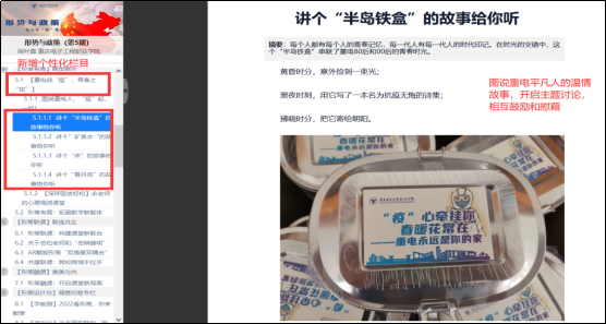 习近平总书记说:“让思政课成为一门有温度的课”。在重电抗疫中,不仅是学校党委行政、学生工作者、教学工作者、志愿者都奋斗在一线,成为了课堂教学主体。同时,全校师生遵守防疫规定,同舟共济、同心同德、步调一致齐心抗疫情,成为了课堂的参与者。这些鲜活事例,让全体学生既是听课人,也是授课人。形策教研室的老师们深入挖掘重电平凡人的鲜活案例,以“数字画”教学模式,借助“一平三端”智慧教学技术,原创“讲个‘半岛铁盒’的故事给你听”、“讲个‘床’的故事给你听”、“讲个‘矿泉水’的故事给你听”、“讲个‘看月亮’的故事给你听”等系列图说故事,为课程增加了温度,让全体学生感受到重电大爱。同时还设立了表白专区,让学生有平台、有途径表达出自己的感谢和爱。