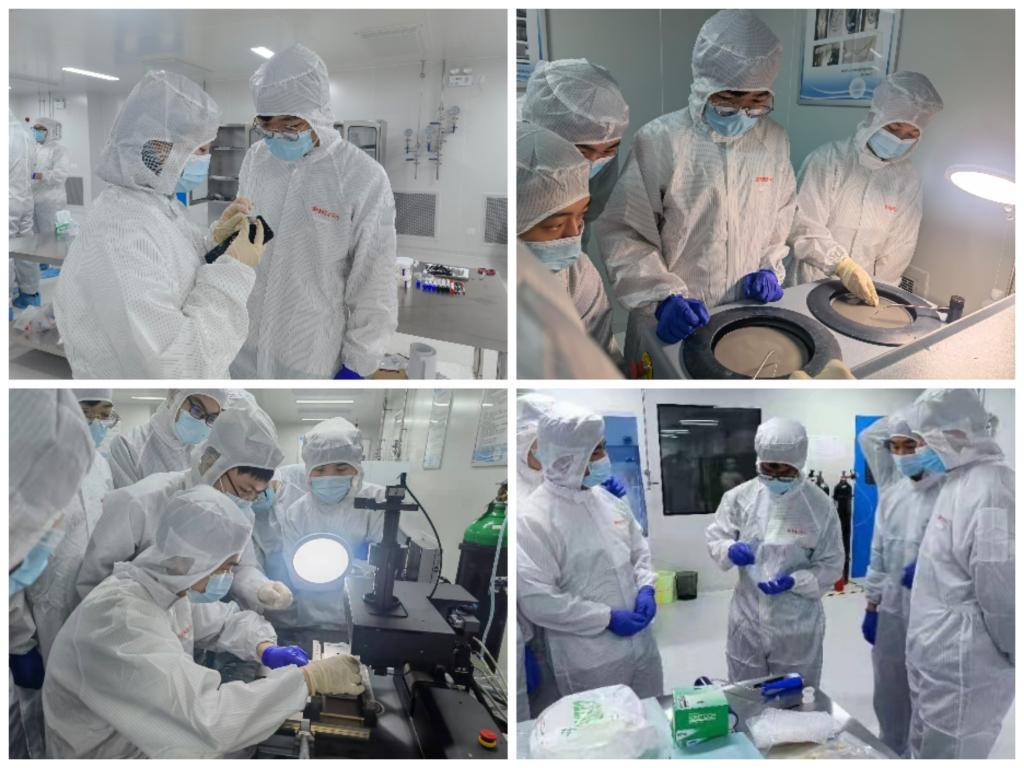 浙江光特科技有限公司由国家级领军人才专家和浙江省级领军人才专家等海归团队创办,在高科技光子芯片领域具有世界先进水平。此次活动我院邀请浙江光特科技有限公司的技术骨干以线上讲授的方式为同学们开展了无尘室的原理及使用规范、倒装贴片技术、芯片制样及磨抛工艺、SEM观测等实训项目的教学。由集成电路系的骨干教师对硅光中心配备的各项设备进行介绍,内化相关知识点,安排学生们分组进行实验,通过实践掌握集成电路制造、封装与测试的相关岗位技能。