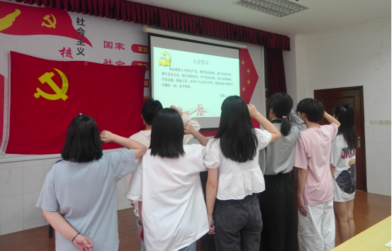 会议第一项议程,许玉玲、段金佑等7名党员发展对象先后向党组织宣读了《入党志愿书》,并汇报了培养期间的表现,今后的努力方向。入党介绍人吴振宇、刘蔚分别介绍党员发展对象的情况,并由党支部组织委员翟玉珠代表支委会汇报了许玉玲、段金佑等7名名同学的培养、教育、考察情况。