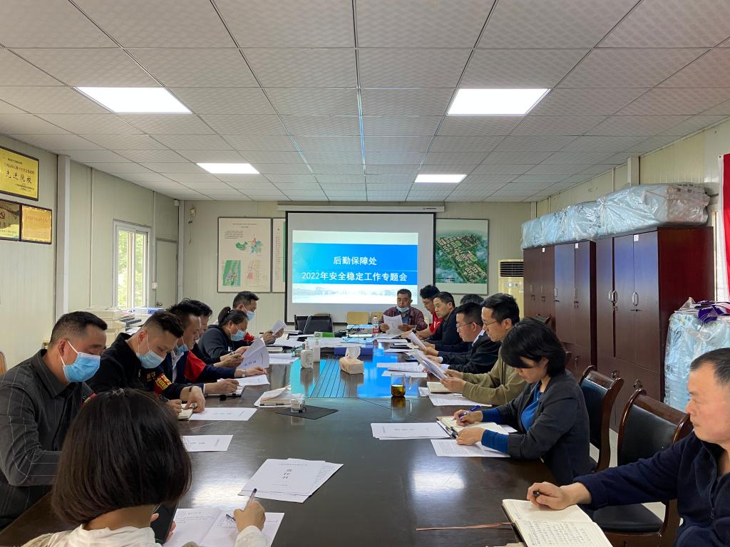 为进一步加强后勤保障处安全稳定工作,排查各类安全隐患,迎接党的二十大,2022年5月19日我处召开了安全稳定工作专题会,副校长黄爱明同志主持会议,后勤保障处处科级干部、六家餐饮公司、大正物业公司参与了会议。