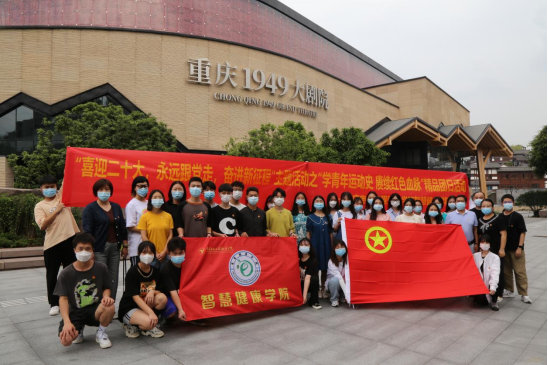为引导年轻学子学习先烈精神,发扬革命传统,感恩幸福生活,用青春唱响“强国复兴有我”的时代强音,积极营造喜迎党的二十大的浓厚氛围。2022年5月24日,智慧健康学院团总支开展“学青年运动史 赓续红色血脉”精品团日活动,由学院党总支书记罗永前、团总支书记佘妮娟带队,组织学院团学骨干和本年度“优秀共青团干部”等青年团员集中观看大型红色舞台剧《重庆•1949》。
