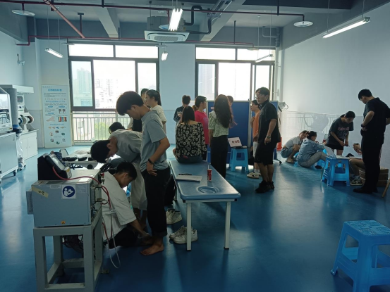本次比赛同学们报名踊跃,参赛人数达百余人。经过层层选拔,共10支队伍50人进入决赛。现场比赛参赛队之间讨论热烈,鞋垫设计、制作等比赛项目正有序开展。
