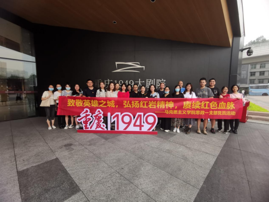 为进一步增强党员党性修养,激励党员干部弘扬红岩精神,赓续红色血脉,积蓄奋进力量,以更加昂扬向上的精神姿态喜迎党的二十大的召开,5月25日,马克思主义学院思政一支部全体党员教师和入党积极分子来到重庆1949大剧院,集中观看大型红色历史舞台剧《重庆·1949》。