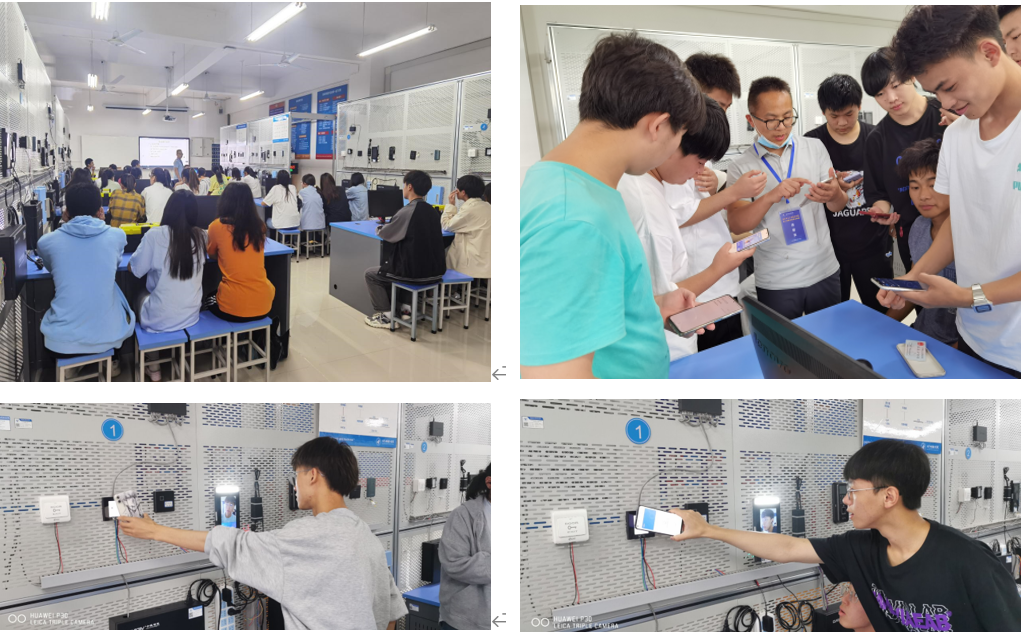 本次体验活动主要分为三个环节:首先是案例引入,由自动识别技术课程组教师靳智、向凤云向介绍生活中的自动识别技术应用场景;其次是教师操作演示,以“智能门禁”项目为依托,现场展示用到的技术及实现的功能;最后是亲身体验环节,同学们以用户身份,亲自体验了自动识别技术为门禁管理带来的便利。