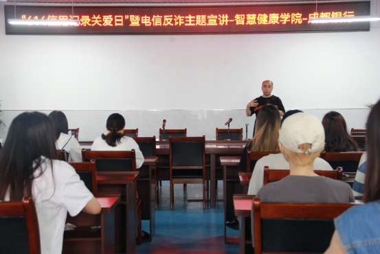 为进一步提升学生防诈骗意识和识骗能力,保护学生财产安全,6月15日上午,智慧健康学院携手成都银行重庆璧山支行开展了“614信用记录关爱日”暨电信反诈主题宣讲。