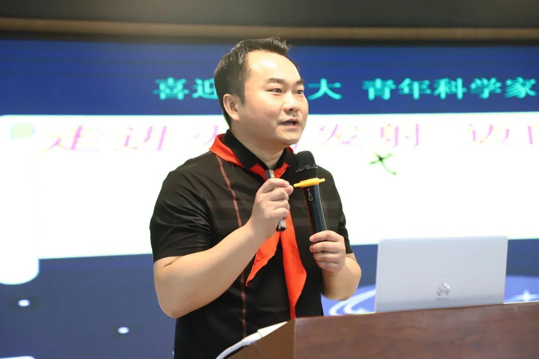 师”三个方面生动形象地讲解了关于火箭的科技知识。课堂中,播放了中国航天火箭发射的视频,让同学们初步领略中国航天事业的光辉瞬间,并通过举例拉近了火箭结构知识点与同学们生活认知的距离。随后毛教授通过分享自己在航天科技上的研究探索故事,让同学们深刻理解航天人精神,并鼓励同学们要怀揣梦想,在学习中要加倍努力,将来为国家未来科学发展贡献自己的力量。