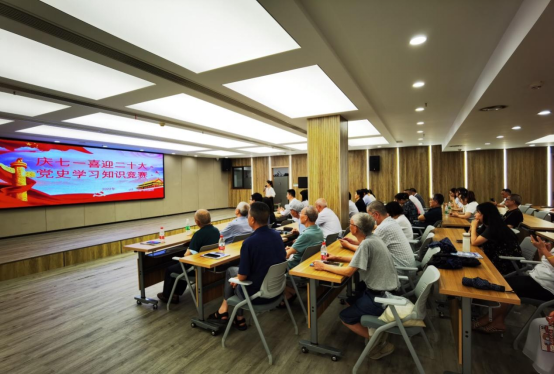 紧接着开展了党史学习知识竞赛,现场的全体党员积极思考,踊跃回答,通过知识竞赛让大家重温了党史,营造了学习党的知识的浓厚氛围,增强了党组织的凝聚力。大家纷纷表示要不断加强学习,经常重温党史,始终牢记党的历史使命,以习近平新时代中国特色社会主义思想为指导,不忘初心、牢记使命、砥砺前进,以实际行动迎接党的二十大召开。思政一支部党员教师和社团学生在活动现场还表演了“党的二十大之歌”三句半、“红心向党共圆中国梦”诗朗诵节目,将活动掀起了一个高潮。