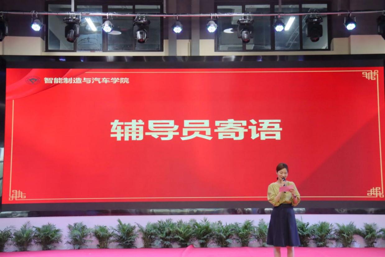 在热烈的掌声中,智能制造与汽车学院党总支书记张进春致辞。张书记寄语毕业生“志当存高远,青春需作为”,向圆满完成学业的2022届的同学们表示热烈的祝贺,也向各位付出辛勤劳动,培育学子的老师们表示衷心的感谢。同时他表示,希望同学们脚踏实地,精耕细作,拓展人生深度;希望同学们志存高远,不忘初心,保持人生力度;希望同学们心怀大爱,放眼世界,提升人生高度。辅导员代表肖璐发表寄语,纵使前路有荆棘,亦当奋力奔跑,希望同学们脚踏实地、追求卓越,为实现中华民族伟大复兴贡献自己的青春、智慧和力量。毕业生代表乔娇阳总结她三年校园时光,她说她将会永远铭记重电校训“厚德强能,求实创新”,传承“龙翔马越、博润致远”的人文精神,毕业后也会以优异的成绩骄傲地向母校报告。