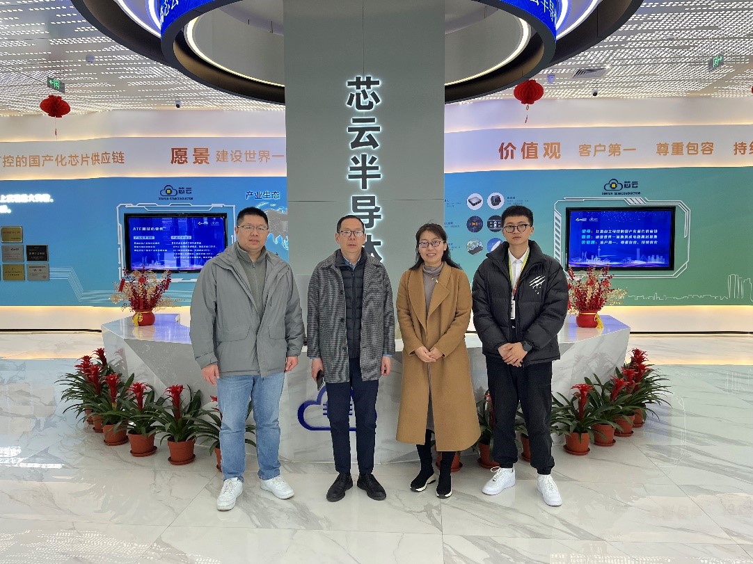 2023年2月27日-29日,电子与物联网学院院长陈良教授带领集成电路系主任马岗强、专业主任卢静赴浙江开展调研活动。陈院长一行先后调研杭州朗迅科技股份有限公司总部、芯云半导体先进测试基地(杭州和诸暨)、全国集成电路人才培训基地(诸暨),并与相关企业领导进行座谈交流。