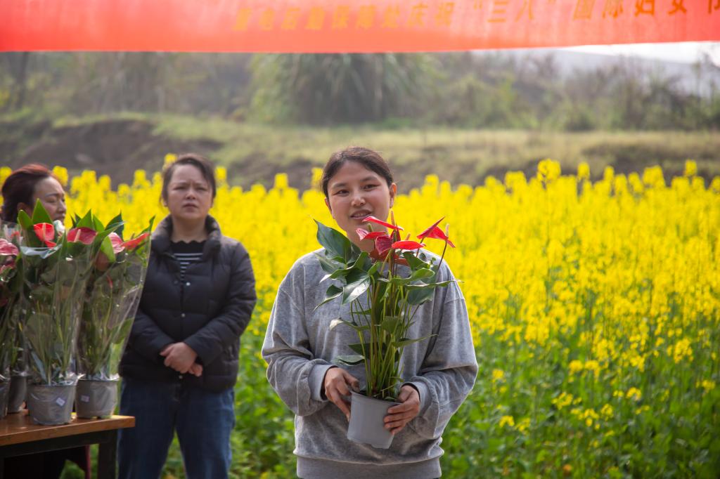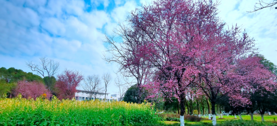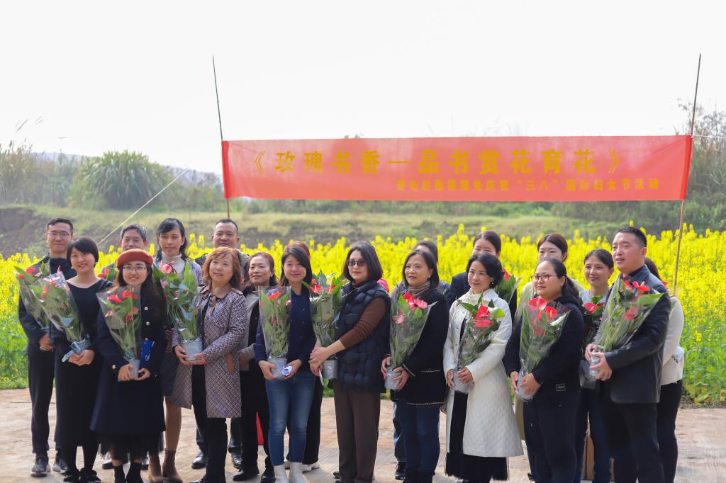最后大家游园观赏油菜花。黄灿灿的油菜花亭亭玉立,中间还点缀了橘黄的、粉红的花朵,蜜蜂在枝头驻足,蝴蝶在花海上翩翩起舞。阳光下,鲜花映着女士们的笑颜,真是人比花娇,美得像一幅色彩斑斓的图画。这幅图画叫“重电花园”,叫“春意盎然”,也叫“女性风貌”!
