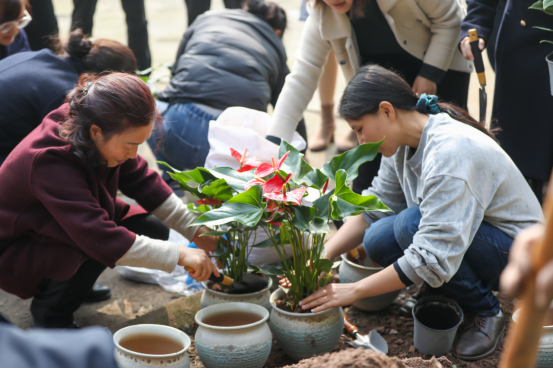 接着王国林老师向大家介绍了红掌的栽种养护知识,大家在园林老师们的指导下现场栽种红掌,干得热火朝天。在现场抽奖环节中,女老师们和现场的女同学都满载而归。